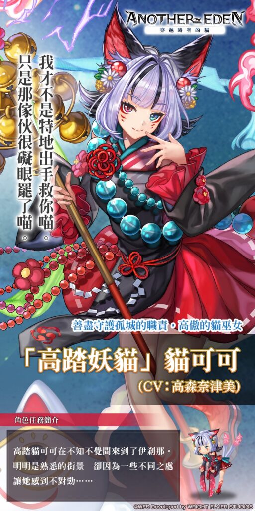 這位口是心非、高傲卻又可靠的可愛貓巫女,將在另一個伊甸的世界中,與你展開全新的冒險旅程。